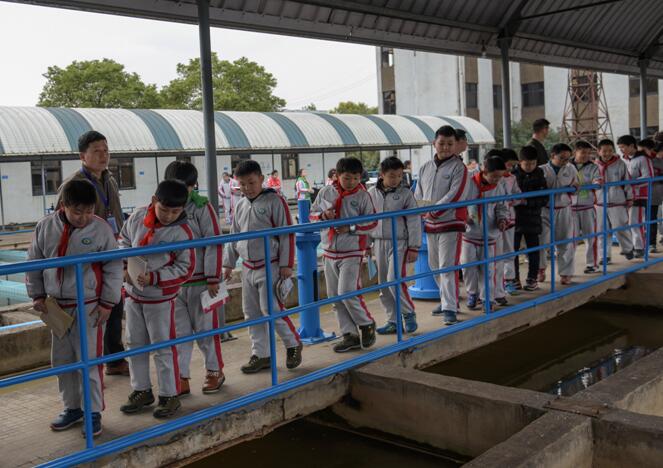 如圖沈家營小學(xué)師生在涼亭山水廠參觀反應(yīng)池。