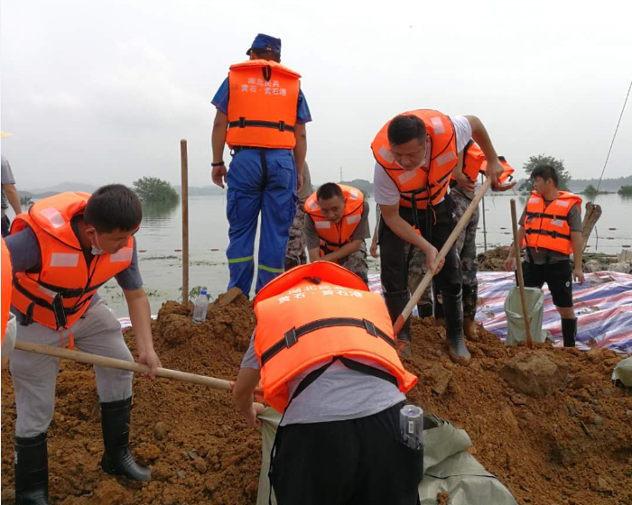 7月9日,市自來水有限公司6名基干民兵服從黃石港區(qū)人武部統(tǒng)一調(diào)配,前往江北管理區(qū)策湖開展防汛工作。當(dāng)天,趁著雨水暫歇,6名民兵同志冒著炎熱天氣不斷搬運(yùn)沙石、加固堤壩,連續(xù)奮戰(zhàn)近8小時(shí),全力以赴趕在下一輪降水前做好防汛準(zhǔn)備,充分發(fā)揮了基干民兵能奉獻(xiàn)、能吃苦、能戰(zhàn)斗的優(yōu)良作風(fēng)。