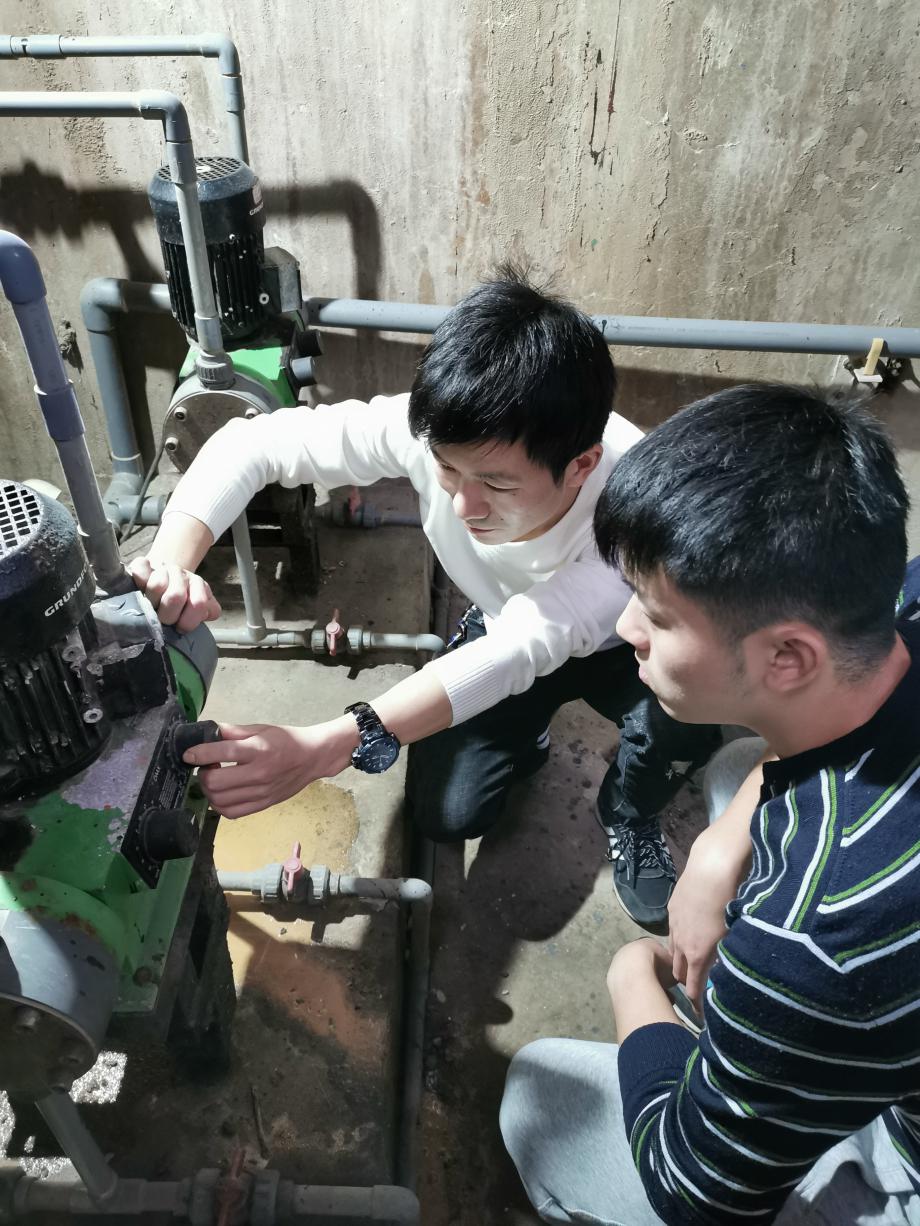 圖為競賽申創(chuàng)對(duì)象王家里水廠生產(chǎn)技術(shù)科科長嚴(yán)志勇發(fā)揮“傳幫帶”作用,帶領(lǐng)青工進(jìn)行技術(shù)改造。