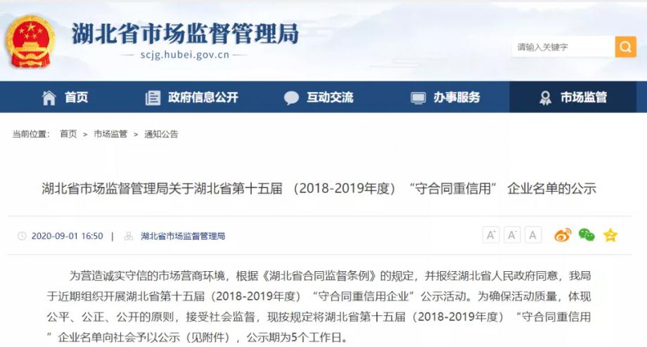 為營(yíng)造誠(chéng)實(shí)守信的市場(chǎng)營(yíng)商環(huán)境,今年,省市場(chǎng)監(jiān)督管理局組織開展了湖北省第十五屆(2018-2019年度)守合同重信用企業(yè)評(píng)選活動(dòng),并進(jìn)行了名單公示。
