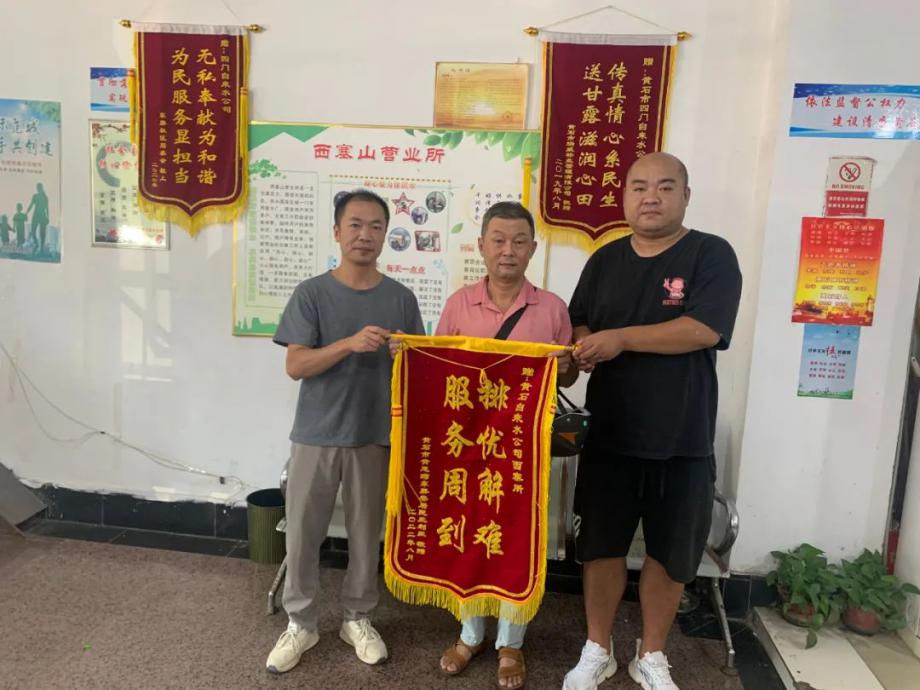 8月9日,陽(yáng)光灼熱卻擋不住用戶感激之情,市民向市自來(lái)水有限公司送上“排憂解難 服務(wù)周到”錦旗,感謝公司及時(shí)發(fā)現(xiàn)市民戶內(nèi)管線漏水,免費(fèi)更換管線維修,保障市民家庭用水。