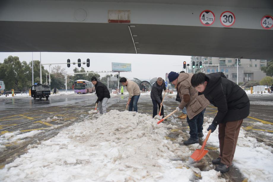 市水務(wù)集團(tuán)應(yīng)急隊(duì)伍清掃高速路口積雪積冰