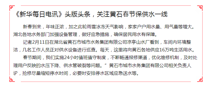 “水務(wù)集團已經(jīng)備足應(yīng)急處置物資材料,供水保障人員、熱線服務(wù)人員、搶修人員嚴格實施24小時值班值守制度,”該集團安全生產(chǎn)部門人員表示,“集團對所屬各廠站實施全時監(jiān)測,科學(xué)調(diào)度,嚴格水質(zhì)檢測監(jiān)控,確保冰凍天氣供水安全”。