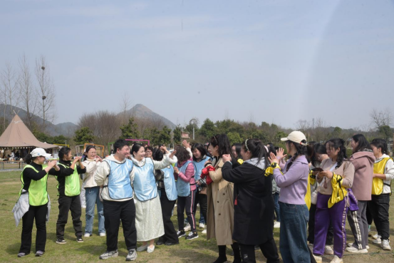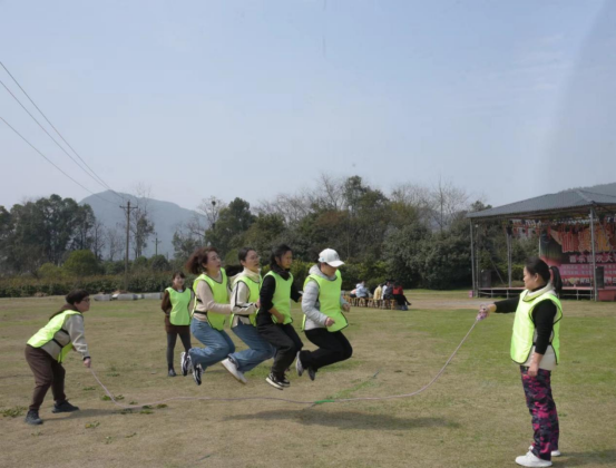 緊接著,女職工們?cè)谌嗉绱繁?、花開花落等熱身破冰運(yùn)動(dòng)后,組成5隊(duì)進(jìn)行PK,團(tuán)建趣味活動(dòng)內(nèi)容豐富多彩,既有跳大繩等傳統(tǒng)的體育項(xiàng)目,也有考驗(yàn)團(tuán)隊(duì)默契配合的“解手鏈”,還有考驗(yàn)智慧的“算二十四點(diǎn)”。隊(duì)員們情緒高漲,各顯神通,使出渾身解數(shù)。整個(gè)賽場(chǎng)熱鬧非凡,口號(hào)聲、加油聲、吶喊聲、歡笑聲不絕于耳。