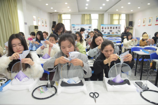 活動(dòng)開始,在聽完手作老師關(guān)于流沙畫制作過程的介紹,參與活動(dòng)的女職工們迫不及待開始投入沙畫的創(chuàng)作。將細(xì)小的砂礫晶體從兩塊透明玻璃之間的小孔內(nèi)一點(diǎn)點(diǎn)注入,待向玻璃之間注入凈水、封口后,一副層次分明、變化萬千的“治愈系”的沙畫便制作完成了。