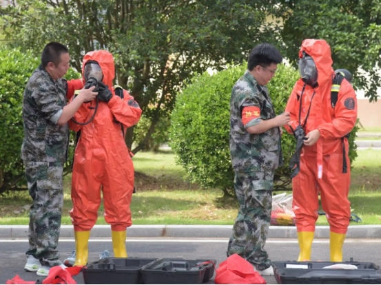 隨著一聲令下,演練拉開序幕。氯氣泄漏報(bào)警鈴聲響起,氯氣泄漏吸收裝置成功自動啟動,值班人員迅速到場巡視,并通過通訊裝置向指揮長報(bào)告現(xiàn)場情況。經(jīng)研判,花湖水廠立即啟動《氯氣泄漏事故應(yīng)急預(yù)案》,搶修組、警戒組、醫(yī)護(hù)組奔赴現(xiàn)場。警戒線迅速擺放到位,搶修人員穿戴好防化服、佩戴好正壓式空氣呼吸器,攜帶專用工具進(jìn)入泄漏現(xiàn)場,進(jìn)行搶險(xiǎn)。經(jīng)過系列應(yīng)急處置,應(yīng)急響應(yīng)解除,花湖水廠恢復(fù)正常生產(chǎn)。演練結(jié)束后,市水務(wù)集團(tuán)副總經(jīng)理袁全保對本次演練活動作點(diǎn)評,針對演練環(huán)節(jié)存在的不足,提出整改意見。