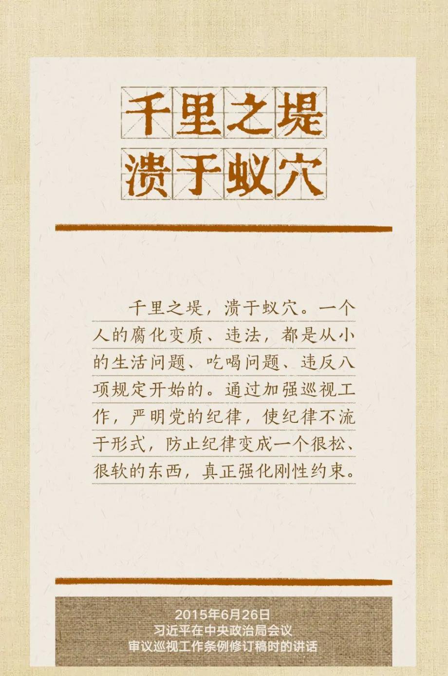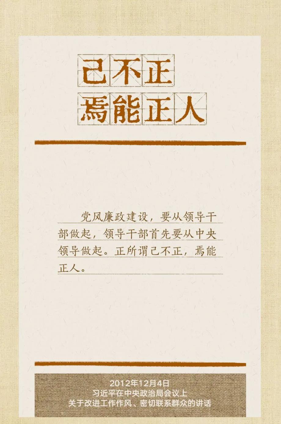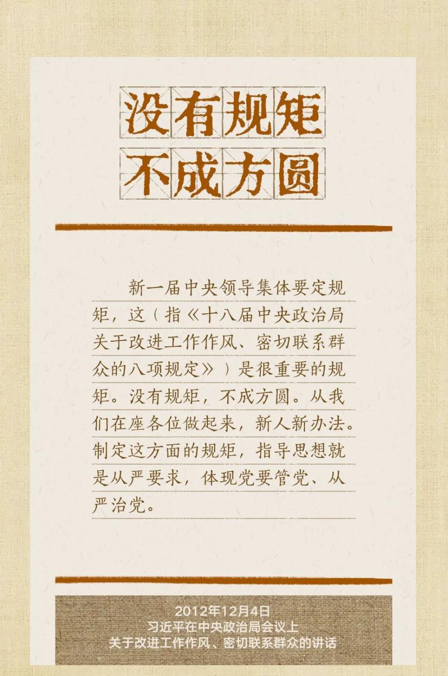 黨的十八大以來,習(xí)近平總書記多次就抓好黨的作風(fēng)建設(shè)、貫徹落實(shí)中央八項(xiàng)規(guī)定精神發(fā)表重要講話,作出重要批示,提出明確要求?!皼]有規(guī)矩,不成方圓”、“己不正,焉能正人”、“盡小者大,慎微者著”……總書記引用的這些古語耐人尋味。