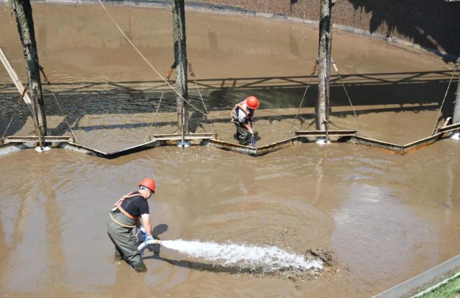 7 月下旬,青山湖污水廠拉響 “警報(bào)”。1 號(hào)二沉池刮泥機(jī)因連日高溫下長(zhǎng)期高負(fù)荷運(yùn)轉(zhuǎn),刮泥板零部件扭曲變形、脫落。要知道,刮泥機(jī)一旦停擺,污水處理沉淀環(huán)節(jié)將陷入混亂,進(jìn)而影響整個(gè)工藝流程的穩(wěn)定運(yùn)行。為將對(duì)污水處理工藝的影響降到最低,市污水公司迅速行動(dòng),多次組織研討,精心優(yōu)化維修方案。在完成向上級(jí)報(bào)備,并采取降低進(jìn)水量、排水放空等預(yù)處理措施后,維修中心與青山湖廠部緊密配合。維修人員身著厚重防護(hù)裝備,毅然踏入池底。高溫下,他們分工明確,沖洗、檢測(cè)、拆卸、安裝等工序有條不紊地進(jìn)行著,專注修復(fù)更換刮泥機(jī)破損部位。經(jīng)過(guò)不懈努力,7 月 30 日,1 號(hào)二沉池恢復(fù)正常運(yùn)轉(zhuǎn)。
