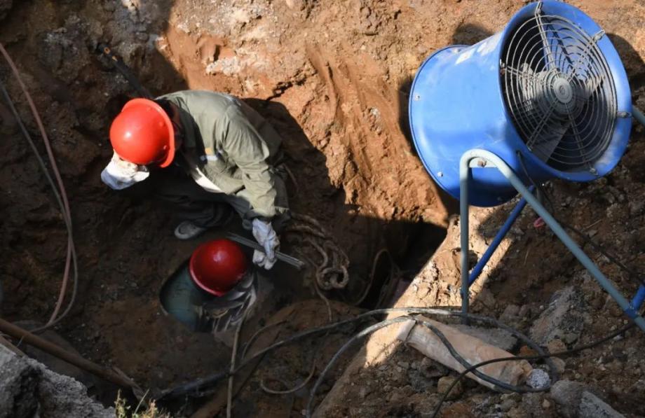 這邊青山湖污水廠的搶修剛剛告一段落,花湖污水廠又出現(xiàn)緊急狀況。7 月 29 日,值班人員發(fā)現(xiàn)曝氣池進(jìn)水污水管地面滲水,初步判斷是管道老化破裂。若不及時(shí)修復(fù),污水外溢將嚴(yán)重污染周邊環(huán)境。情況上報(bào)后,公司迅速響應(yīng),現(xiàn)場(chǎng)指揮調(diào)度有序開展。挖掘機(jī)持續(xù)近三小時(shí)作業(yè),終于找到破損點(diǎn)。工作人員嚴(yán)格按照專業(yè)流程進(jìn)行安全作業(yè),在有限且悶熱的管道空間內(nèi),蜷縮著身體焊接,每半小時(shí)輪換一次。盡管汗水濕透衣衫,手臂被管道燙出紅痕,但他們沒(méi)有絲毫退縮,只為盡快排除隱患。